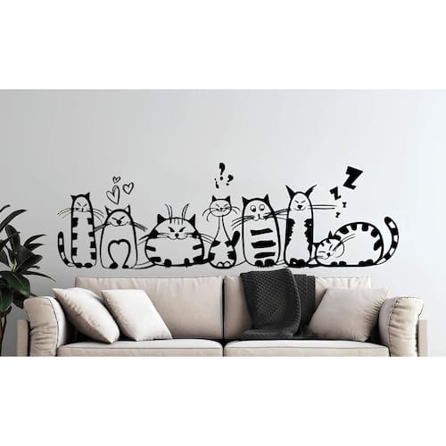 Adesivo de parede trilha sonora dos gatos Medida: 80 x 25 cm As imagens anunciadas são ilustrativas Tamanho do adesivo O adesivo da foto parece grande