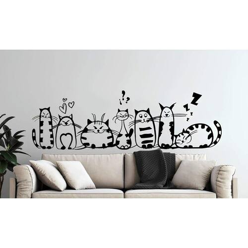 Adesivo de parede trilha sonora dos gatos Medida: 90 x 28 cm As imagens anunciadas são ilustrativas Tamanho do adesivo O adesivo da foto parece grande