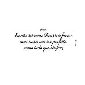 Adesivo de parede tudo que deus faz é perfeito Medida: 90 x 31 cm As imagens anunciadas são ilustrativas Tamanho do adesivo O adesivo da foto parece grande Então atenção: O modelo que está na foto não se refere ao tamanho do adesivo anunciado. deixamos o adesivo grande para que você possa visualizar melhor o produto que está comprando