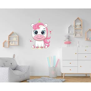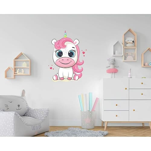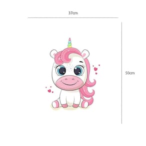 Adesivo de parede unicórnio mod02 Medida: 37 x 50 cm As imagens anunciadas são ilustrativas Tamanho do adesivo O adesivo da foto parece grande