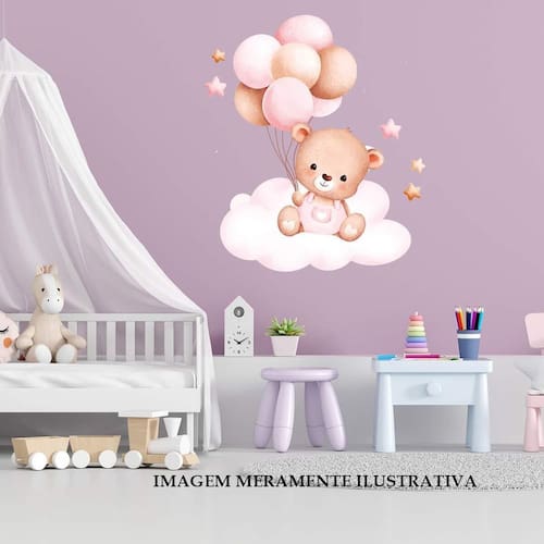 Adesivo de parede ursinha na nuvem mod02 Medida: 40 x 46 cm As imagens anunciadas são ilustrativas Tamanho do adesivo O adesivo da foto parece grande