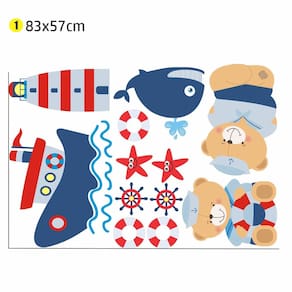 O adesivo com o tema Urso Marinheiro é uma escolha clássica e acolhedora para quartos de bebê ou crianças. Ele combina a ternura e a segurança do urso de pelúcia com a temática náutica (listras, âncoras, barcos), criando um ambiente de aventura, ordem e serenidade.