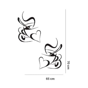 Adesivo de parede xícaras de café Medida: 65 x 70 cm As imagens anunciadas são ilustrativas Tamanho do adesivo O adesivo da foto parece grande Então atenção: O modelo que está na foto não se refere ao tamanho do adesivo anunciado. deixamos o adesivo grande para que você possa visualizar melhor o produto que está comprando