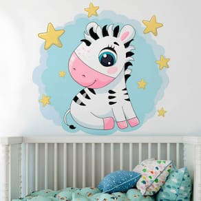 Adesivo de parede zebra baby mod01 Medida: 58 x 56 cm As imagens anunciadas são ilustrativas Tamanho do adesivo O adesivo da foto parece grande