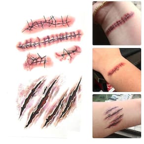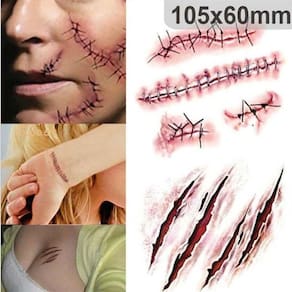 Tamanho: 105 mm* 60 mm Material e cola de tinta segura e de boa qualidade, padrão desenhado por um ótimo tatuador. Cor brilhante e verdadeira, muito parecida com uma tatuagem real. Impermeável, à prova de suor, higienizado à mão e disponível em loção no banheiro, mas se você lavar demais, a cor desaparecerá. Ótima opção como tatuagem temporária, maquiagem corporal e também pode cobrir a cicatriz no corpo. Veja menos