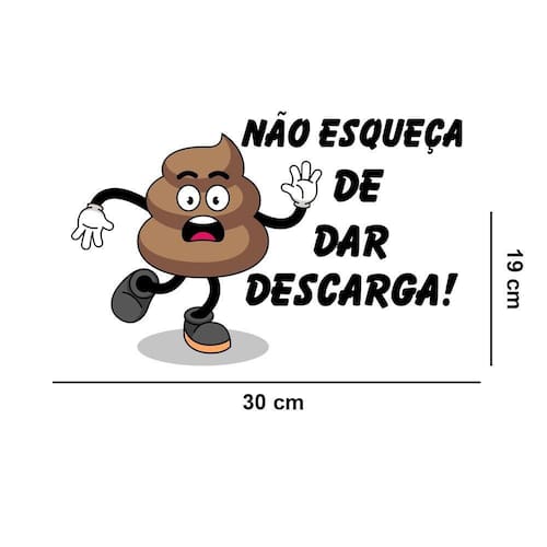 Adesivo de vaso sanitário não esqueça da descarga Medida: 30 x 19 cm Atenção as medidas Os adesivos decorativos são produzidos com material de alta qualidade. As imagens anunciadas são ilustrativas