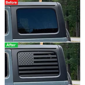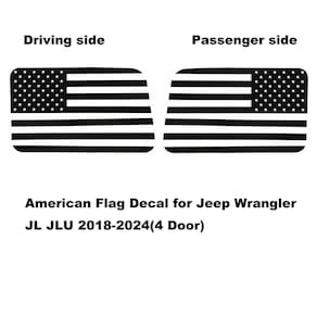 Zxiaochun Decalque de janela traseira da bandeira americana compatível com Jeep Wrangler JL JLU 2018-2023 2024 (versão de 4 portas), vidro de janela lateral traseira pré-cortado adesivo de vinil da - 1 par de decalques de janela traseira acessórios da bandeira americana para Wrangler JL JLU Exterior. - Compatível com Jeep Wrangler JL JLU 2018 2019 2020 2021 2022 2023 2024. Serve apenas para Wrangler JL JLU de 4 portas, não 2 portas. - Os adesivos são feitos de vinil, pré-cortados para facilitar a aplicação e não deixam manchas ou resíduos quando removidos. - Este decalque é projetado e fabricado com base em elementos da bandeira americana, use-o para decorar seu caminhão Wrangler e mostrar seu patriotismo enquanto muda a aparência do seu veículo. - Fácil de instalar, vem com ferramentas de instalação e instruções.