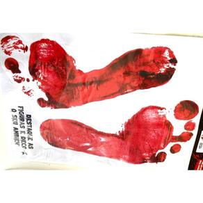 Características do produto: - Adesivo decorativo grande - Descola sem deixar resíduo - Estampa de pés com sangue - Tamanho da cartela adesiva: 23x10cm - Composição: Adesivo em filme de PVC, tintas gráficas atóxicas e verniz de proteção - Conteúdo: 1 cartela