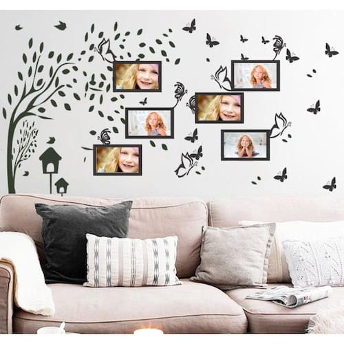 Adesivo Decorativo de Parede Porta Retratos Com Vários Espaços para Fotos e Árvore com Borboletas