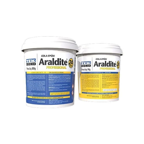 descrição do produto - o araldite profissional 10808501400 da tekbond é indicado para colagem de superfícies de materiais lisos, porosos ou irregulares; - perfeito para colar azulejos, madeira, vidro, concreto, fibras naturais, pedras, metais, entre outros materiais; - também pode ser utilizado na maioria dos plásticos rígidos, exceto polipropileno, polietileno e nylon; - melhor custo benefício, composto por um balde com 1 kg de resina e um balde com 800g de endurecedor; características: - utilizado em colagens profissionais; - com alta resistência mecânica; - proporciona alto desempenho e performance; - ampla possibilidade de usos; - pode ser utilizado como verniz de alta performance; - capaz de resistir à temperaturas de até 80 ºc; especificação técnica - resistência ao calor: 80ºc; - resina: epóxi; - endurecedor: n, n-dimetildipropilenotriamina, trietilenotetramina; - tempo para utilização da mistura: 60 minutos; - cura inicial: 90 minutos; - cura total: 24 horas; - temperatura de aplicação: + 5 a 35°c; - temperatura de trabalho: - 30 a 80°c; - resistência ao cisalhamento kgf/cm2 : >/ = 120; - embalagem: balde; - quantidade: 1,8 kg; - modelo: 10808501400; - marca: tekbond; resina: - aparência visual: incolor a amarelado; - viscosidade aparente a 25°c: 30. 000 a 50. 000 cps; endurecedor: - aparência visual: líquido claro; - viscosidade aparente a 25°c: 20. 000 a 35. 000 cps;
