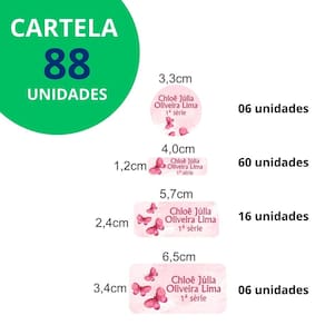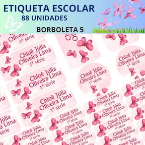 Adesivo Etiqueta Escolar Personalizado Vinil Borboleta 88 UN - Cor: Borboleta 5