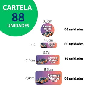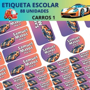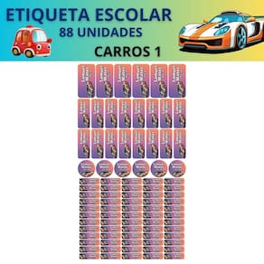 Adesivo Etiqueta Escolar Personalizado Vinil Carros 88UN - Cor: Carros 1