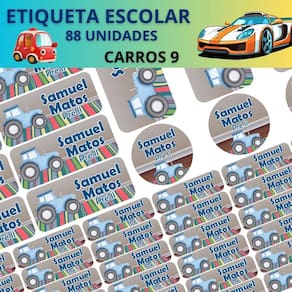 Adesivo Etiqueta Escolar Personalizado Vinil Carros 88UN - Cor: Carros 9