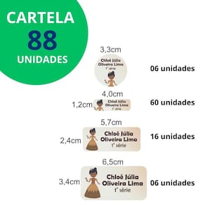 Adesivo Etiqueta Escolar Personalizado Vinil Princesa 88UN - Cor: PRINCESA 7