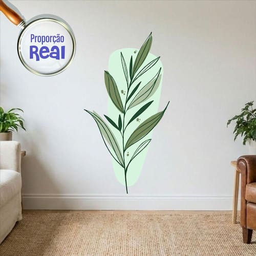 Adesivo Floral Boho Verde Estilo Nórdico 63x120 Minimalista Mod.03