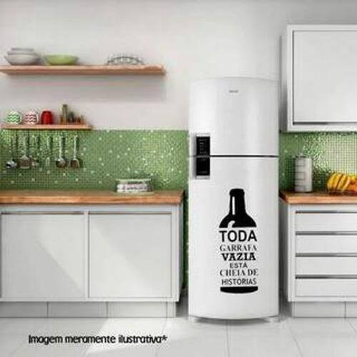 Adesivo geladeira toda garrafa tem históra Medida: 25 x 70 cm As imagens anunciadas são ilustrativas Tamanho do adesivo O adesivo da foto parece grande Então atenção: O modelo que está na foto não se refere ao tamanho do adesivo anunciado. deixamos o adesivo grande para que você possa visualizar melhor o produto que está comprando