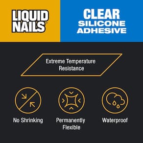 - Um adesivo de grau de construção de silicone transparente, permanente e de ligação rápida projetado para uso em todos os tipos de aplicações de reparo doméstico, montagem leve e remoldagem