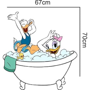 Adesivo para box margarida e pato donald mod01 Medida: 67 x 70 cm As imagens anunciadas são ilustrativas Tamanho do adesivo O adesivo da foto parece grande Então atenção: O modelo que está na foto não se refere ao tamanho do adesivo anunciado. deixamos o adesivo grande para que você possa visualizar melhor o produto que está comprando