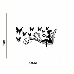 Adesivo para carro fada e borboleta As imagens anunciadas são ilustrativas Tamanho do adesivo O adesivo da foto parece grande Então atenção: O modelo que está na foto não se refere ao tamanho do adesivo anunciado. deixamos o adesivo grande para que você possa visualizar melhor o produto que está comprando