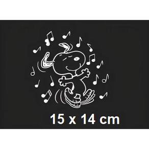 Adesivo para carro snoopy dançando Cor: branco As imagens anunciadas são ilustrativas Tamanho do adesivo O adesivo da foto parece grande