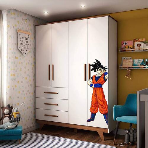 Adesivo para guarda roupa goku mod01 Medida: 28 x 90 cm As imagens anunciadas são ilustrativas Tamanho do adesivo O adesivo da foto parece grande