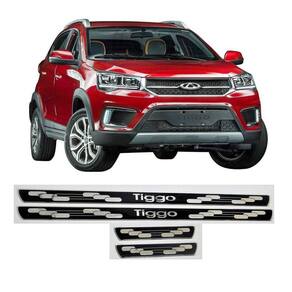 Adesivo para soleira preto resinado Elegance para o Tiggo Adesivo para soleira preto resinado Elegance para o Tiggo Todos os anos. KIT de Adesivos resinados para soleiras na cor PRETO.Sua principal função é proteger a pintura do veículo no momento de entrada e saída do mesmo; Para você que compra um carro 0km e não quer riscos indesejáveis na pintura ou para você que já tem riscos na soleira do veículo que quer cobri-los esse é um produto indispensável; Ela é 100% autocolante e de fácil instalação; Produto personalizado com o nome do carro, destacando a soleira da porta. Aplicação: Picanto 2012 em diante. Especificações Técnicas: Fabricado em Resina de Poliuretano;Adesivo automotivo;Poliéster de alta durabilidade;Possui design exclusivo para o veículo; Kit com 4 peças uma para cada porta ; Não amarela e não trinca com o tempo; Feito sob medida para cada veículo; Recortadas eletrônicamente seguem o padrão da tipografia da montadora do veículo; 3 meses de garantia. Instalação: Limpar a superfície com álcool e colar o produto; Não necessita furar o veículo; Recomendamos que a instalação seja feita por um profissional qualificado. A Scaracessorios não se rsponsabiliza por defeitos de má instalação e mau uso do produto.Imagens meramente ilustrativas.