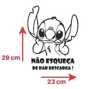 Adesivo para vaso sanitário feche a tampa - stitch As imagens anunciadas são ilustrativas Tamanho do adesivo O adesivo da foto parece grande Então atenção: O modelo que está na foto não se refere ao tamanho do adesivo anunciado. deixamos o adesivo grande para que você possa visualizar melhor o produto que está comprando