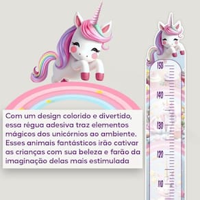 Adesivo Parede Régua Crescimento Unicórnio Arco Iris Cupcake