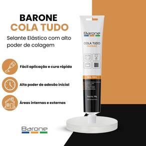 BARONE COLA TUDO é um selante elástico, tixotrópico e monocomponente à base de polímero híbrido. Este cura com a umidade do ar formando uma borracha flexível e resistente.