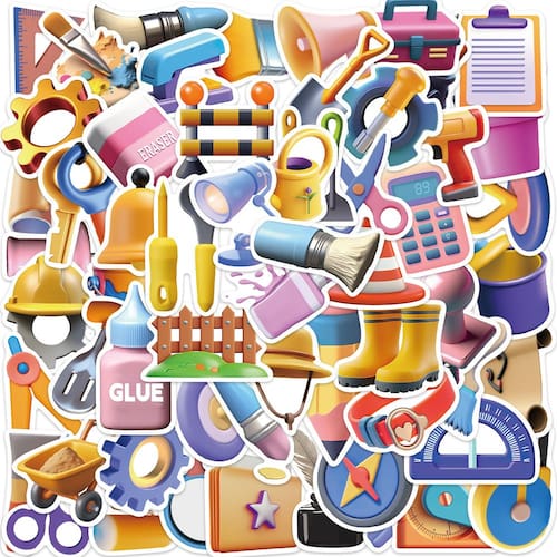 Designs inspirados em ferramentas 3D — O pacote inclui 50 adesivos exclusivos em estilo de desenho animado em 3D com várias ferramentas, como martelos, pincéis, chaves de fenda e equipamentos de segurança, perfeitos para entusiastas de bricolage e crianças. Duráveis e impermeáveis — Feitos de vinil de alta qualidade, esses adesivos são à prova d'água, garantindo que permaneçam vibrantes e intactos em itens como garrafas de água, laptops e muito mais. Perfeito para projetos de bricolage — Use esses divertidos adesivos para decorar seu diário, álbum de recortes, laptop, garrafas de água, malas e outros itens com um tema divertido inspirado em bricolage. Ótimos para crianças e adultos — Uma forma divertida de expressar criatividade, esses adesivos são perfeitos para amantes de bricolage, crianças ou qualquer pessoa que goste de projetos de artesanato ou decoração com temas de ferramentas. Fácil de aplicar e remover — Os adesivos de vinil são fáceis de descascar e colar, não deixando resíduos quando removidos, ideais para decorações de curto prazo ou reestilização constante.