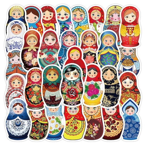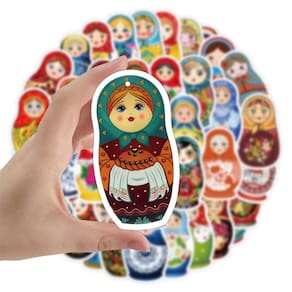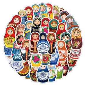 Adesivos, 50 unidades/lote, bonecas russas coloridas, vinil impermeável