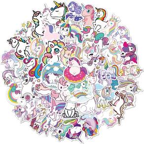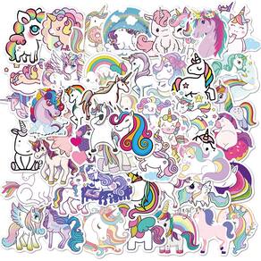 Adesivos, 50 unidades/lote, unicórnios, vinil impermeável, anime, 5-7 cm