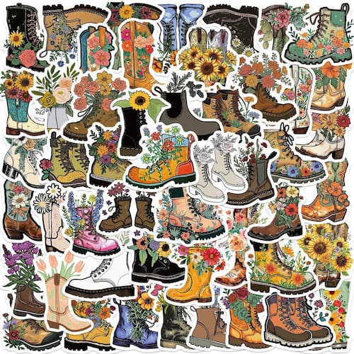Designs exclusivos de botas florais — Inclui 50 adesivos exclusivos com botas coloridas adornadas com lindas flores, perfeitas para amantes da natureza e da moda. Impermeáveis e duráveis — Feitos de vinil de alta qualidade, esses adesivos são à prova d'água e duráveis, o que os torna ideais para uso externo em garrafas de água, laptops, malas e muito mais. Perfeito para criar e personalizar — Ótimo para fazer scrapbooking, registrar no diário, decorar garrafas de água, laptops, cadernos, agendas e muito mais com um toque floral vibrante. Tamanho versátil — Cada adesivo mede entre 5 e 8 cm, o que o torna o tamanho perfeito para decorar uma variedade de superfícies sem sobrecarregar seu design. Removível sem resíduos — Esses adesivos podem ser reposicionados ou removidos facilmente sem deixar nenhum resíduo pegajoso, garantindo uma aplicação limpa.