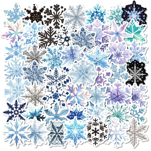 Material: papel e vinil Peso: 30-60 g Tamanho: 3-6 cm Quantidade: 50 peças Tema de floco de neve de inverno 50 peças de adesivos exclusivos de flocos de neve em tons de azul, branco, preto e roxo, adicionando uma atmosfera sazonal de inverno aos seus itens pessoais e projetos criativos. Vinil impermeável durável Feitos de material de vinil de alta qualidade, esses decalques são à prova d'água, resistentes ao sol e de longa duração, mantendo cores vibrantes em uso interno e externo. O design autoadesivo Easy Peel & Residue-Free torna os adesivos simples de aplicar e remover sem deixar resíduos pegajosos, seguros para laptops, garrafas ou móveis. Decoração DIY versátil. Perfeita para decorar laptops, garrafas de água, capas de telefone, skates, malas, álbuns de recortes, cadernos, janelas, capacetes e muito mais. Os belos padrões de flocos de neve criativos e estéticos são adequados para adolescentes e adultos, ideais para personalizar artesanato de inverno, decoração sazonal ou diário estético.