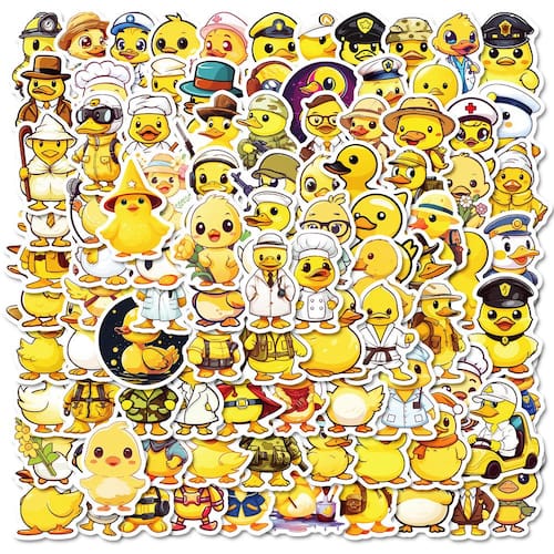 Material: papel e vinil Peso: 30-60 g Tamanho: 3-6 cm Quantidade: 50 unidades Inclui 50 adesivos exclusivos e adoráveis com patos amarelos em várias roupas e poses. Perfeito para personalizar laptops, capas de telefone, garrafas de água, álbuns de recortes e muito mais. Feito com vinil impermeável de alta qualidade para durabilidade e uso duradouro. Fácil de aplicar e remover sem deixar resíduos, ideal para todos os tipos de decoração. Uma forma divertida e divertida de mostrar seu amor por animais fofos e personagens de desenhos animados.