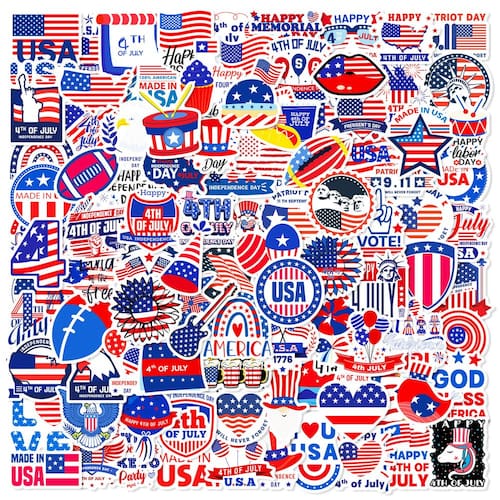 100 designs patrióticos exclusivos — Inclui estrelas, bandeiras, águias, Lady Liberty, fogos de artifício, cupcakes, faixas, slogans como “Fabricado nos EUA” e “4 de julho” em temas vibrantes de vermelho, branco e azul. Vinil impermeável de alta qualidade — Duráveis e resistentes às intempéries, esses decalques resistem à água, ao rasgo e ao desbotamento — ideais para uso interno e externo em superfícies lisas. Decoração fácil de fazer você mesmo — perfeita para personalizar laptops, garrafas de água, capas de telefone, álbuns de recortes, guitarras, capacetes ou decoração de festas para o Dia da Independência. Fácil de descascar e reutilizar — Cada decalque é pré-cortado com um adesivo forte, garantindo que nenhum resíduo permaneça após a remoção. Adequado para todas as idades para projetos criativos. Pacote portátil, grande variedade — 100 peças em um conjunto leve de 40-45 g com tamanhos que variam de 5 a 8 cm, oferecendo uma mistura de gráficos americanos clássicos e divertidos de festivais.