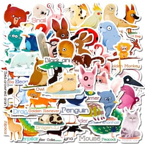 Material: papel e vinil Peso: 30-60 g Tamanho: 3-6 cm Quantidade: 50 unidades Pacote de animais de desenho animado — Inclui 50 adesivos exclusivos com adoráveis animais de olhos grandes, como cães, gatos, pinguins, corujas, macacos, coelhos e muito mais. Design engraçado e fofo — Cores brilhantes e estilo exagerado de olho de feijão trazem humor e diversão às suas criações de bricolage, perfeitas para crianças e adolescentes. Duráveis e impermeáveis — Feitos de vinil de alta qualidade, esses decalques são à prova d'água, resistentes ao desbotamento e removíveis sem deixar resíduos. Uso multiuso — Ideal para decorar laptops, álbuns de recortes, skates, malas, garrafas de água, capas de telefone, cadernos e outras superfícies lisas. Diversão criativa de bricolage — Ótima para crianças, estudantes e adultos que gostam de artes, artesanato e de personalizar seus pertences com lindos adesivos de desenhos animados.