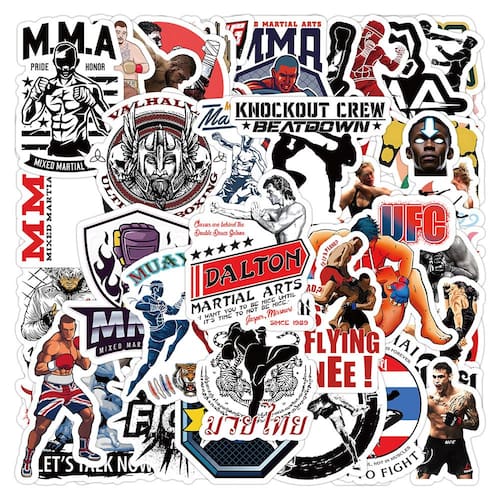 Adesivos de artes marciais mistas, vinil impermeável, 50 unidades