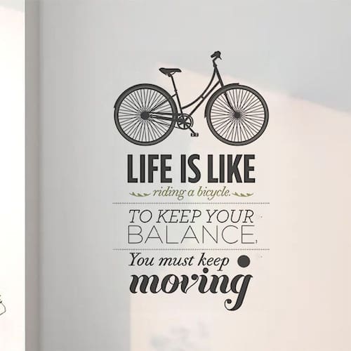 Material: PVC Tamanho: 40x60cm Design inspirador: apresenta um gráfico de bicicleta vintage com a frase motivacional: “A vida é como andar de bicicleta. Para manter o equilíbrio, você deve seguir em frente”, incentivando a perseverança e o equilíbrio. Estilo elegante: perfeito para adicionar um toque de criatividade e motivação à sua casa, escritório ou quarto com um design de bicicleta simples e elegante. Decoração versátil: ideal para salas de estar, espaços de trabalho, academias, quartos e muito mais, esse decalque traz uma sensação de calma e inspiração a qualquer espaço. Fácil de aplicar: feito de material de PVC autoadesivo, este adesivo de parede pode ser aplicado sem esforço em qualquer superfície lisa e removido sem deixar resíduos. Durável e duradouro: o PVC de alta qualidade garante que o decalque permaneça vibrante e intacto por anos sem desbotar ou descascar.