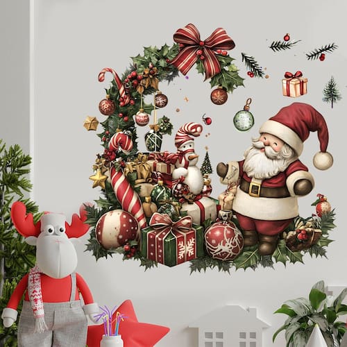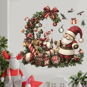 Material: PVC Tamanho: 39 x 40 cm O desenho animado do Papai Noel apresenta um Papai Noel alegre com presentes, bastões de doces, enfeites e elementos festivos de coroa de flores, adicionando um toque caloroso de Natal ao seu espaço. Adesivos de parede de Natal versáteis Decoração ideal para salas de estar, entradas, quartos infantis ou salas de aula, aprimorando a atmosfera festiva. Autoadesivos e fáceis de remover Feitos de material de PVC ecológico, esses decalques de papel de parede são fáceis de aplicar, descascar e reposicionar sem danificar as paredes. Brilhante e durável. A impressão de alta qualidade garante cores vivas e padrões claros que mantêm seu charme festivo durante toda a temporada. Decoração de Natal perfeita Adequada para casa, vitrines, cafés e festas, trazendo alegria e espírito sazonal a qualquer ambiente.