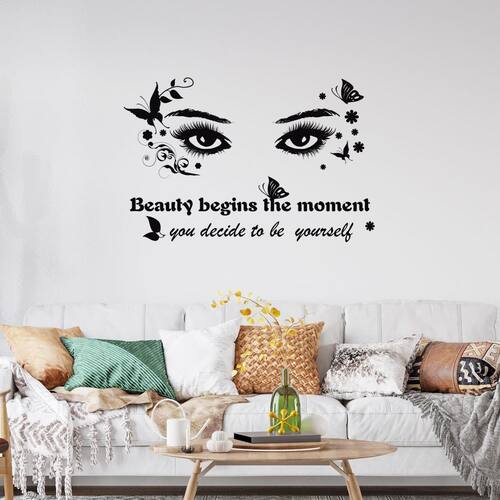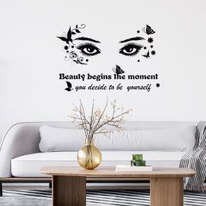 Material: PVC Tamanho: 25x38 cm Peso: 37 g Elegant Eyes & Quote Design — Apresenta olhos artísticos com borboletas, detalhes florais e letras motivacionais, adicionando estilo e inspiração às suas paredes. Material de PVC durável — Feito de PVC ecológico à prova d'água, garantindo uso duradouro com impressão em preto vívido que resiste ao desbotamento e descamação. Fácil de descascar e colar — O design autoadesivo se aplica suavemente a superfícies limpas e planas, como paredes pintadas, azulejos ou vidro, e remove sem deixar resíduos. Decoração inspiradora versátil — perfeita para quartos, salas de estar, escritórios ou salas de aula, criando uma atmosfera positiva com arte de parede moderna. Tamanho compacto — mede 25x38 cm, é leve e fácil de arrumar de forma flexível para caber no espaço de parede desejado ou combinar com outros decalques decorativos.