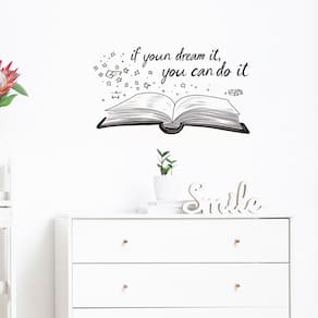 Material: PVC Tamanho: 21x60cm Motivational Quote Design apresenta a frase “Se você pode sonhar, você pode fazer” com um livro aberto e estrelas, incentivando a imaginação e a positividade. Adesivos de parede de PVC autoadesivos fáceis de aplicar e remover, simples de descascar e colar, removíveis sem deixar resíduos, adequados para paredes e móveis lisos. Material durável e seguro Feito de PVC impermeável premium, não tóxico e resistente ao desbotamento, garantindo uma decoração segura e duradoura. Uso versátil Perfeito para quartos, salas de estudo, salas de aula, escritórios, creches e bibliotecas, aprimorando os espaços educacionais e decorativos. Decoração elegante e inspiradora Adiciona uma atmosfera elegante e significativa, inspirando criatividade, motivação e amor pelo aprendizado.