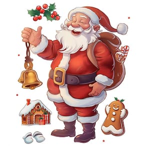 Material: PVC Tamanho: 29 x 30 cm O design festivo do Papai Noel apresenta um Papai Noel alegre com elementos natalinos, incluindo sino, azevinho, pão de gengibre e doces, adicionando um charme alegre à sua decoração sazonal. Material de PVC durável Feito de PVC ecológico, impermeável, resistente a rasgos e seguro para superfícies lisas, como vidro, espelhos e paredes. Autoadesivo e removível Fácil de aplicar e remover sem deixar resíduos, permitindo uma rápida decoração e reposicionamento do feriado conforme necessário. Decoração de férias versátil Ideal para decorar salas de estar, quartos, creches, lojas, salas de aula ou locais de festas para criar uma atmosfera festiva acolhedora. O tamanho perfeito mede 29 x 30 cm, compacto, mas atraente, fácil de combinar com outros adesivos de parede de Natal para um tema sazonal completo.