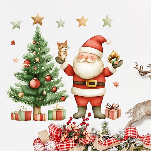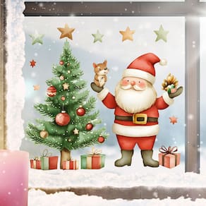 Material: PVC Tamanho: 38 x 40 cm O desenho animado Holiday Design apresenta um Papai Noel alegre, uma árvore de Natal decorada, presentes e estrelas, criando uma cena sazonal alegre para qualquer espaço. Material de PVC premium Feito de PVC ecológico, esses adesivos de parede são à prova d'água, duráveis e seguros para quartos infantis e decorações festivas. Fácil de aplicar e remover O design aderente estático simplifica a instalação sem cola, reutilizável em superfícies lisas como vidro, paredes e espelhos. Decoração versátil Perfeita para decorar quartos, salas de estar, salas de aula, vitrines e locais de festas durante a temporada de férias. Compacto e atraente, mede 38 x 40 cm, um tamanho ideal para se destacar e combinar perfeitamente com outras peças de decoração de Natal.