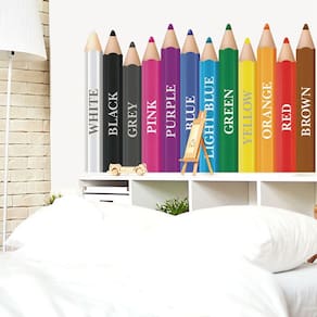Material: PVC Tamanho: 40x63,5 cm Design de lápis educacional — apresenta lápis coloridos rotulados com nomes de cores como vermelho, azul, verde e amarelo, ajudando as crianças a aprender enquanto decoram seu espaço. Estilo brilhante e divertido — Os tons vívidos do arco-íris criam um ambiente alegre e divertido, ideal para creches, salas de aula e quartos infantis. 🧩 Durável e fácil de aplicar — Feito de material de PVC premium, impermeável, autoadesivo e removível sem deixar resíduos nas paredes ou nos móveis. Perfeito para espaços de aprendizagem — combina decoração de parede com educação em cores, tornando-o um excelente complemento para jardins de infância, salas de jogos ou centros de aprendizagem precoce. Tamanho decorativo prático — Medindo cerca de 40x63,5 cm, adequado para paredes, portas ou cantos de estudo, agregando estilo e valor educacional.