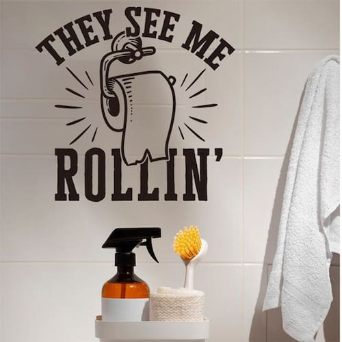 Material: PVC Tamanho: 40 x 40 cm Design humorístico de banheiro — apresenta um slogan divertido “They See Me Rollin'” com uma estampa em rolo de papel higiênico, adicionando diversão e personalidade às paredes do banheiro. Material de PVC premium — Feito de PVC impermeável e ecológico que é durável, seguro e fácil de limpar para uma decoração duradoura. Easy Peel & Stick — O design autoadesivo permite uma instalação rápida em paredes ou ladrilhos lisos, removível sem deixar resíduos pegajosos. Decoração de banheiro versátil — perfeita para banheiros, banheiros ou portas de sanitários, aprimorando os espaços com um toque divertido e criativo. Tamanho grande e visível — mede 40x40 cm, o que o torna ousado o suficiente para se destacar como uma placa engraçada de banheiro e arte decorativa de parede.