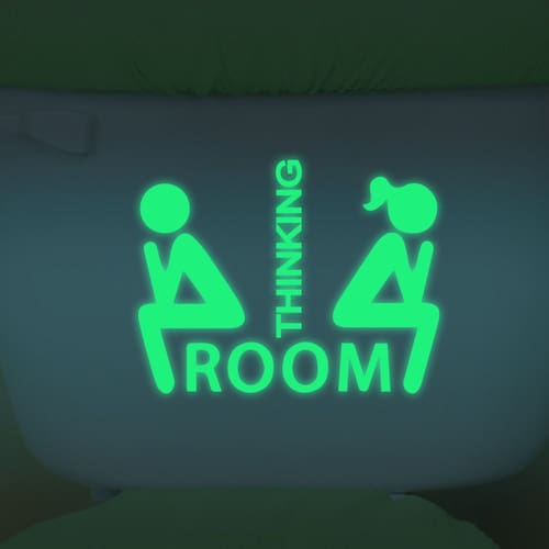 Material: PVC Tamanho: 14x16 cm Design que brilha no escuro — apresenta um adesivo humorístico de parede de vaso sanitário “Thinking Room” com silhuetas masculinas e femininas que brilha por até 4 horas no escuro. Material de PVC durável — Feito de PVC impermeável e ecológico com revestimento luminoso, garantindo brilho duradouro e uso seguro nos banheiros. Fácil de aplicar e remover — O adesivo autoadesivo se instala rapidamente em superfícies lisas e pode ser removido sem deixar resíduos pegajosos. Prático e decorativo — funciona tanto como uma placa divertida de banheiro quanto como uma arte luminosa na parede, ideal para banheiros domésticos, banheiros ou banheiros de escritório. Tamanho compacto e versátil — Medindo 14x16 cm, adequado para tampas de vasos sanitários, paredes de banheiro, azulejos ou portas, adicionando um toque divertido e funcional.