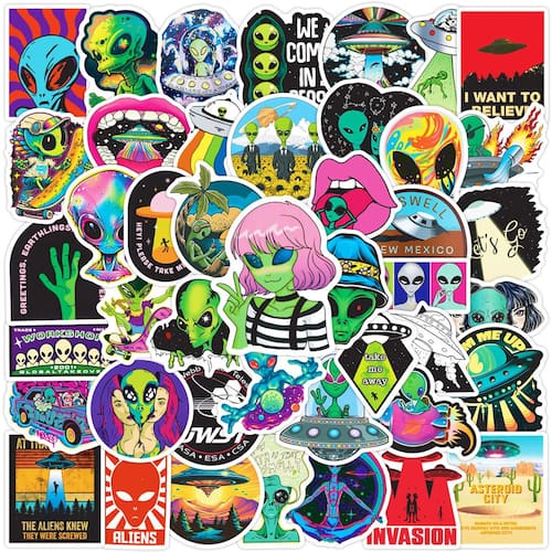 Adesivos de vinil impermeável Aliens Ufos Anime 50 unidades/lote