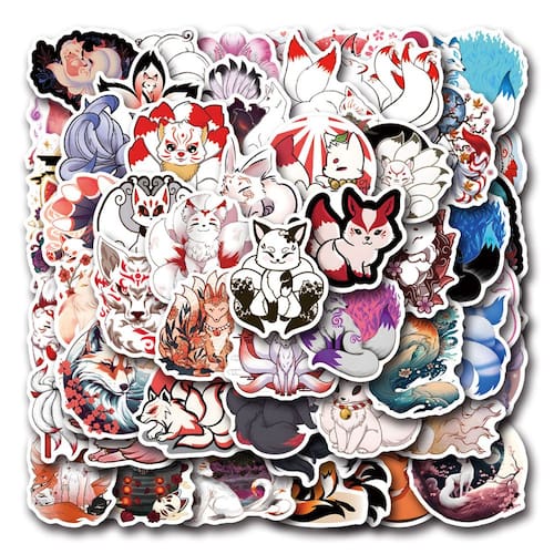 Adesivos de vinil impermeável Kitsunes, anime, 55 unidades, 5-7 cm