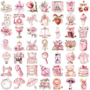 Material: papel e vinil Peso: 30-60 g Tamanho: 3-6 cm Quantidade: 50 unidades Tema rosa pastel 50 peças de adesivos de vinil PET em design de aquarela rosa suave, com flores, ursinhos de pelúcia, coelhos, bolos, livros, fitas e elementos de estilo de vida aconchegantes. Durável e impermeável Feito de material PET impermeável de alta qualidade, resistente ao desbotamento e fácil de remover sem deixar resíduos pegajosos. Amplas aplicações. Perfeito para decorar laptops, tablets, capas de telefone, garrafas de água, álbuns de recortes, diários, skates, guitarras e malas. Fácil de descascar e colar Cada decalque é pré-cortado com bordas lisas para facilitar o descascamento e forte adesão em superfícies lisas e limpas. Para amantes de bricolage, o design estético em rosa pastel torna esses adesivos ideais para registrar no diário, fazer álbuns de recortes e personalizar itens essenciais do dia a dia para meninas, adolescentes e adultos criativos.